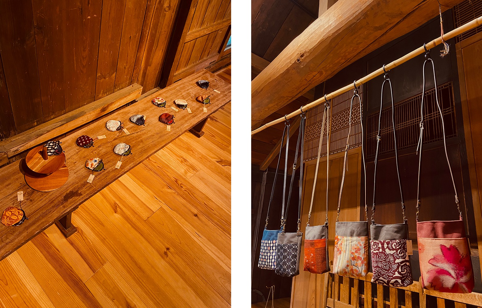 他には、今回の展示会では着物や帯をたくさんお持ちで、ご自分でもリメイクのバッグをお作りになるお客さまも多く見えました。お手持ちの作品もとっても素敵です!私は縫製にこだわりがあるわけではないので、これまでとは少し違う着物地の活用方法を探していらっしゃる方に向けて、次回は、型紙を用意したり、お持ちの古布で作れるような簡単キットを販売するのもいいな〜と今後の方向性が見えたり、アイデアもたくさんわきました!