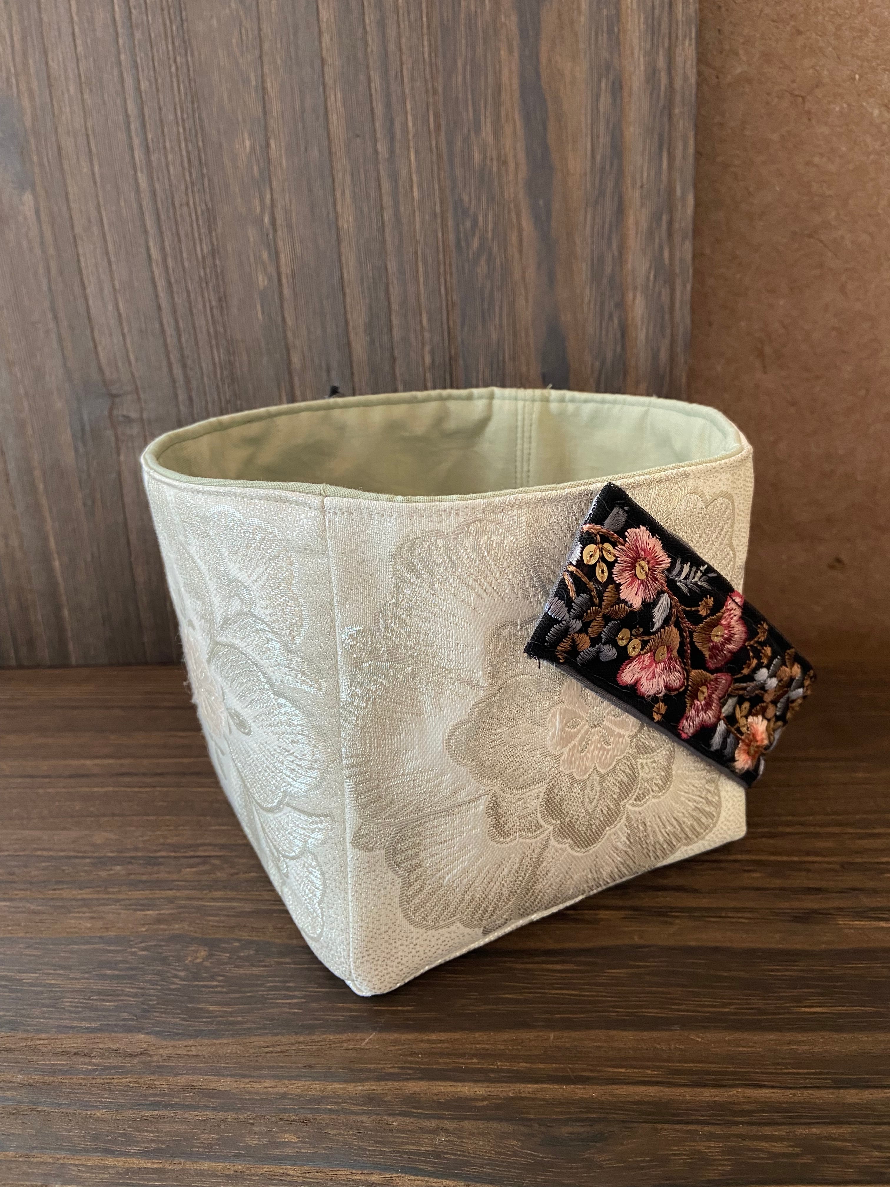 お花の織り柄が美しい袋帯からのリメイクしました。