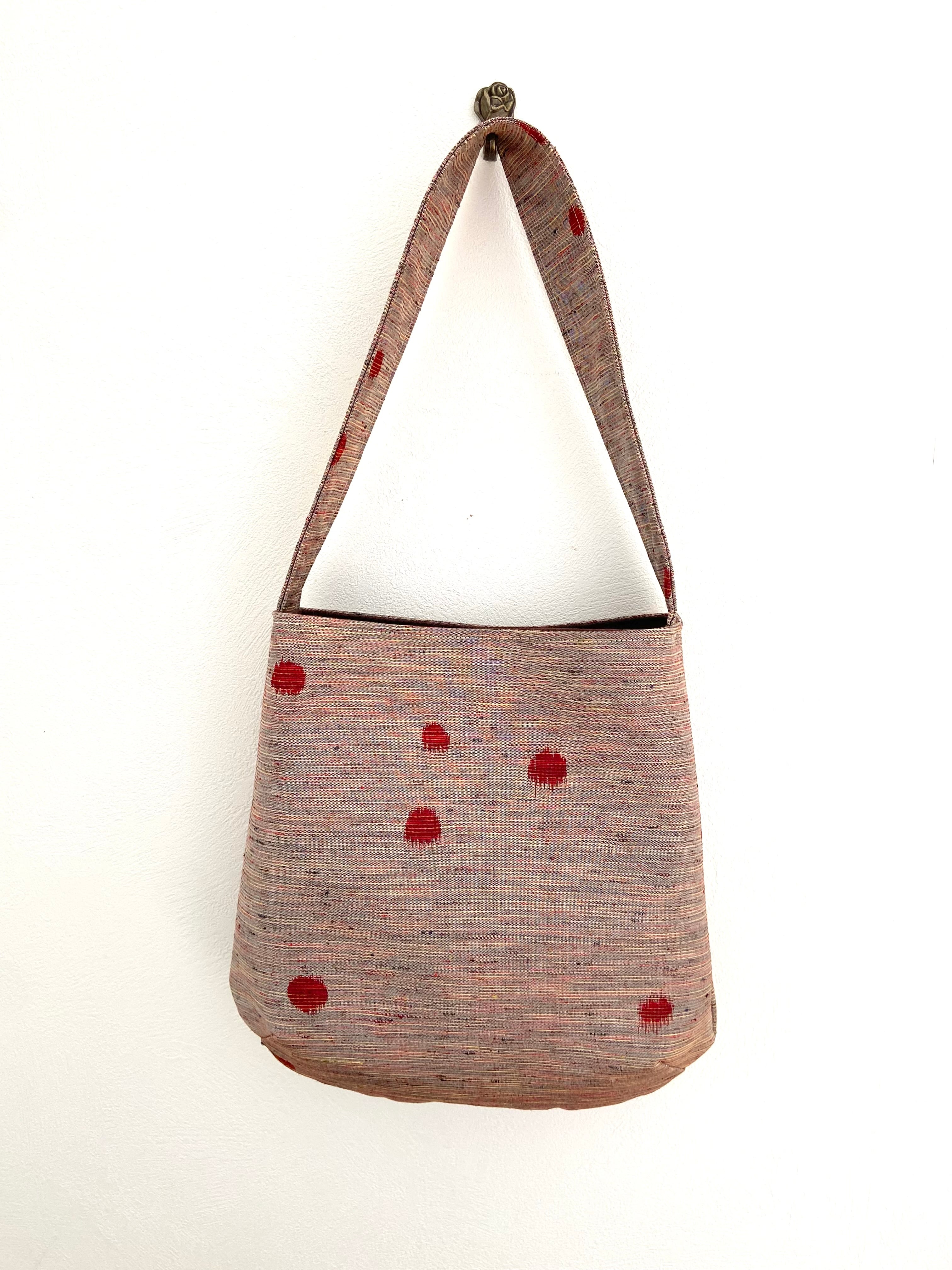 ランダムな水玉が素朴な印象の紬、シンプルなワンハンドルバッグです。
