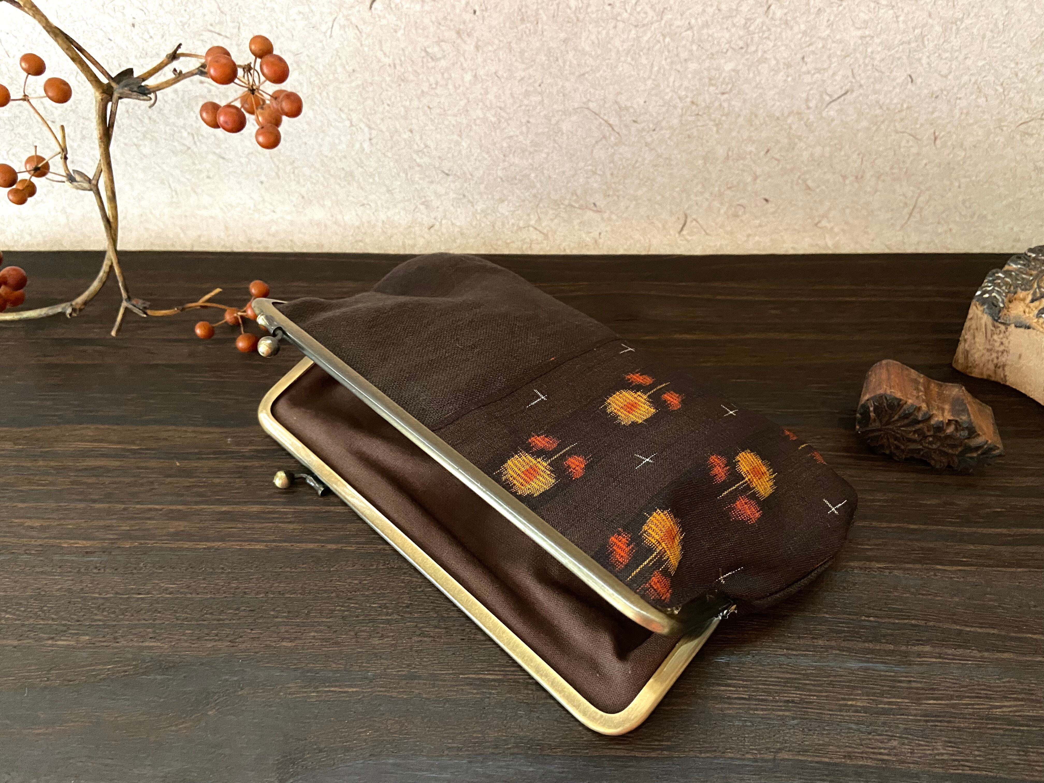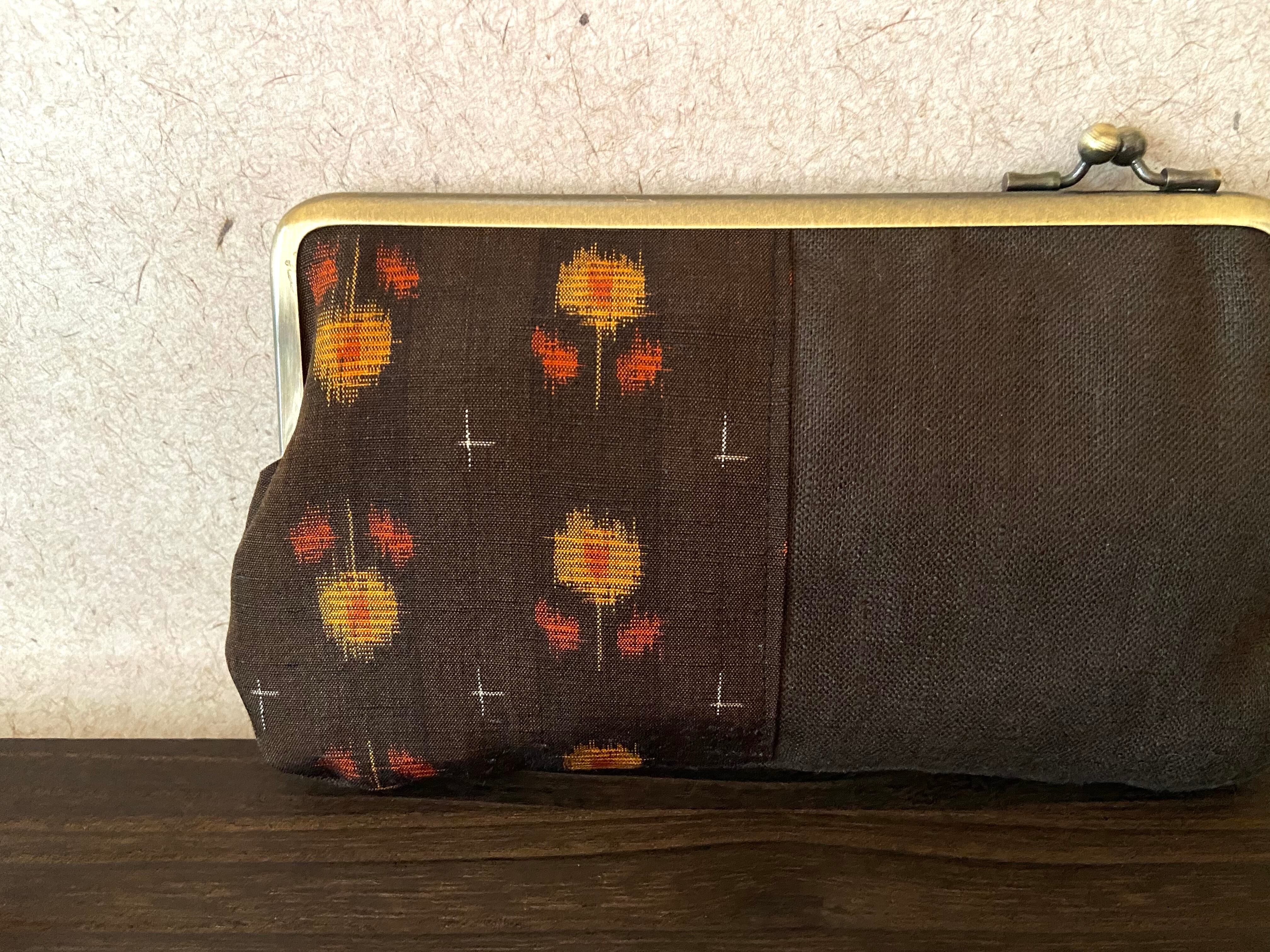 アンティーク調の口金がレトロなムードを盛り上げます。通帳入れや化粧ポーチとしてなど、日常使いにいかがでしょうか♬
